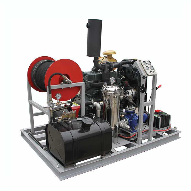75HP柴油機驅動,意大利HAWK高壓泵,120L/min超大流量管道疏通清洗機,可疏通800mm直徑管道。